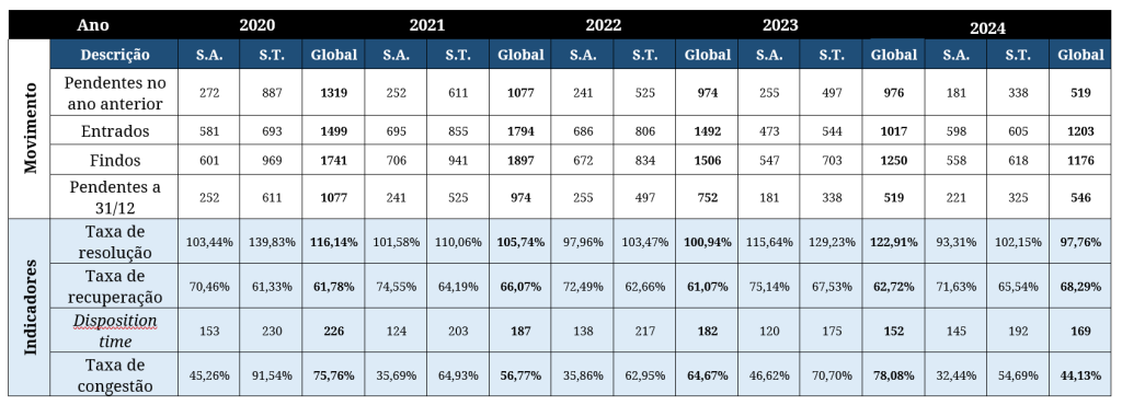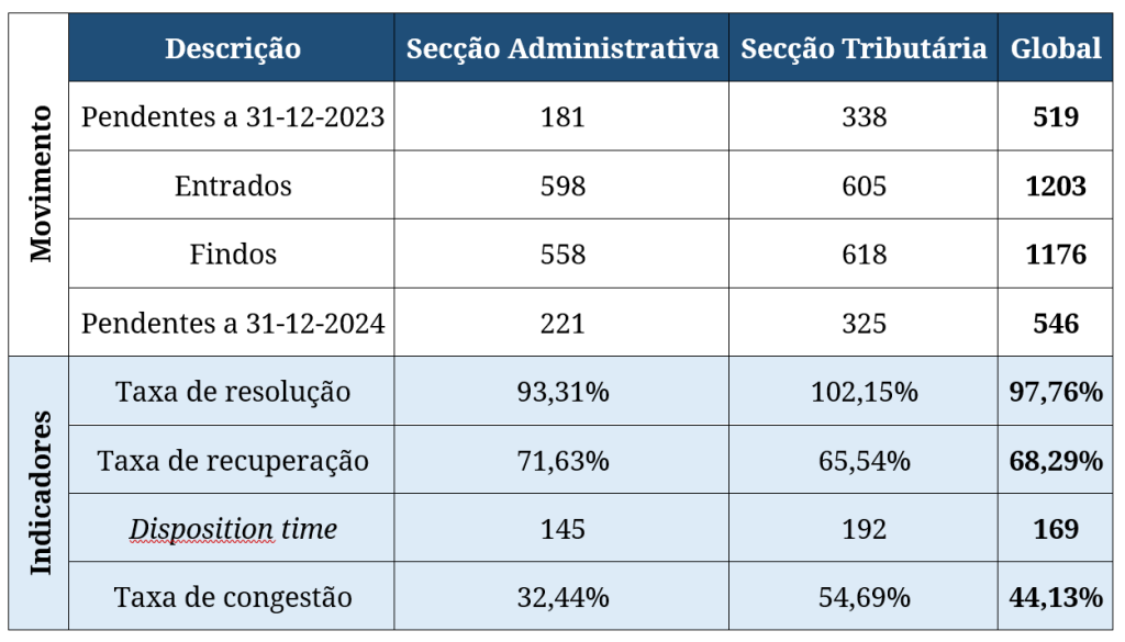 Movimento processual e indicadores de gestão do STA no quinquénio 2020/2024